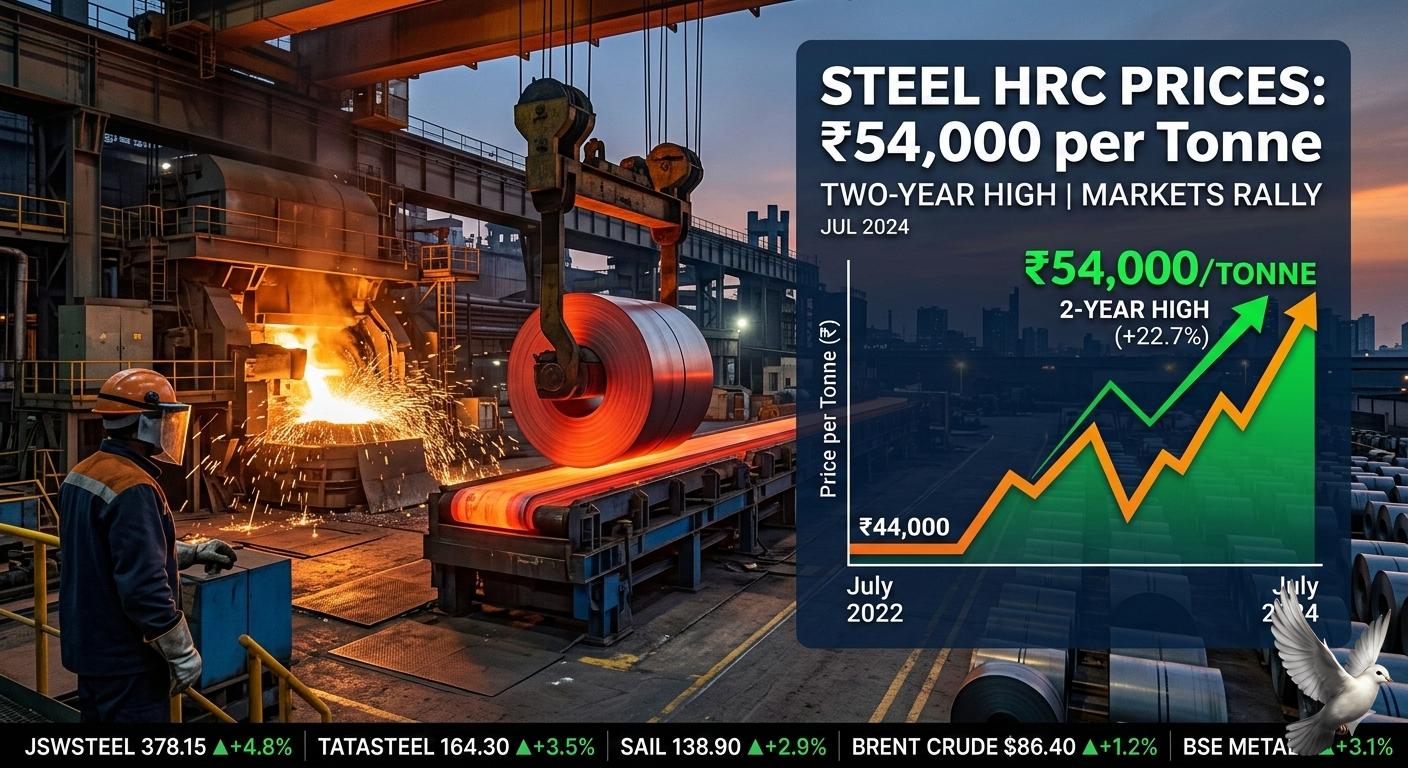 India’s steel market has staged a dramatic recovery, with hot-rolled coil (HRC) prices climbing to a two-year high of ₹54,000 per tonne. This marks a sharp reversal from November lows of ₹47,000, driven by a combination of policy protection, surging input costs, and a frontloaded infrastructure cycle.